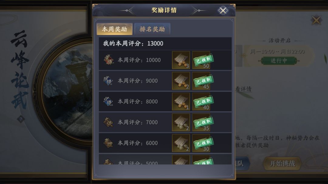 大家好,我是喜欢在游戏中赚钱的九处密探,今天跟大家讲解一下游戏中“云峰论武”,想要打这个活动,基本上99%的小伙伴都是冲着高级铸造图纸去的,这玩意不仅能够有机会熔铸出金色的天脉,还能剥离下来在商行卖元宝,谁会不喜欢呢?想要奖励拿满规则很简单,只要当周只要达到了10000分,奖励就能拿满。