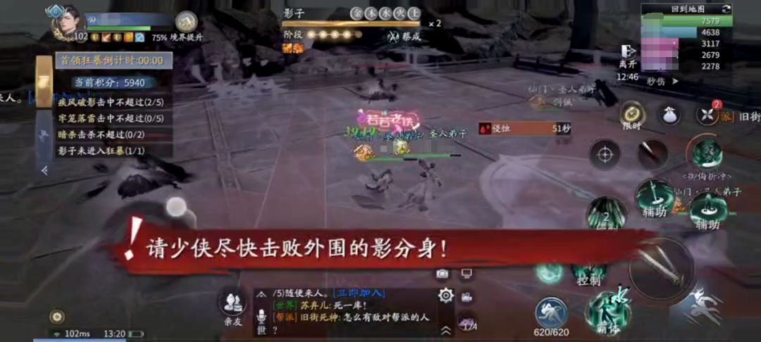 第三个技能【影分身】会召唤出一定数量的影分身,用对应的五行技能攻击影分身能打破护盾,打破护盾后的影分身非常脆弱,可以轻易解决。在打BOSS的时候,我们可以拉到一起顺手用五行技能群掉。