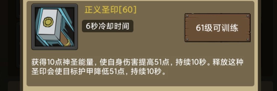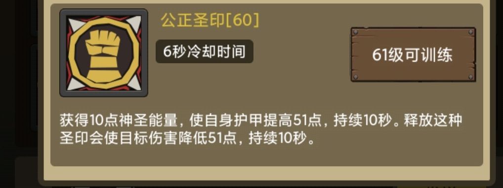 审判圣契。骑士就是围绕审判输出的。所以减少五点消耗,能行成更加流畅的输出循环。
