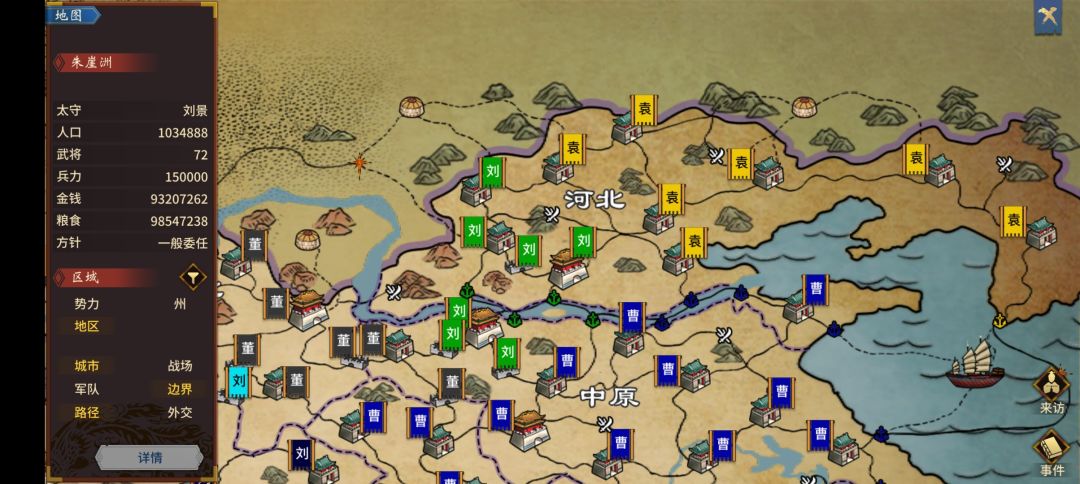 张翼,王昶在上党援助赵云;几个港口则由刘封统一治理;而关羽,魏延,公孙瓒,郝昭,卢植,沮授,吕岱,霍峻等人则集中于洛阳地区