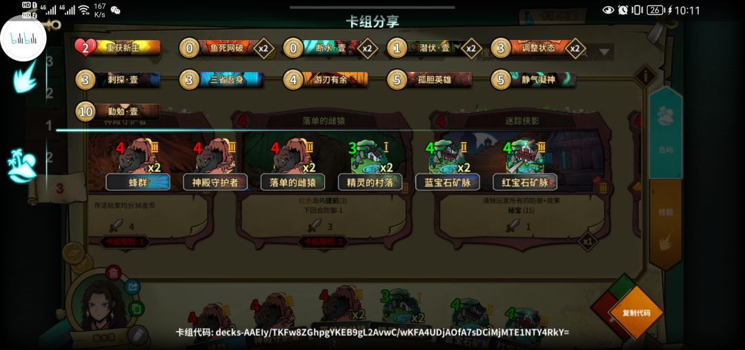 核心卡就是断水和鱼死,压力小的时候无脑用三省丢其他卡,靠源源不断的剑气和减甲压死其他人。
