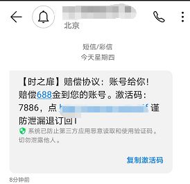 近期有多名玩家反映,收到了类似如下图打着《时之扉》名义的营销短信