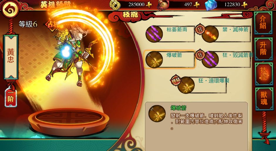 【爆破箭】发射爆破箭遇到敌方炸裂,范围内单位2点物理伤害。