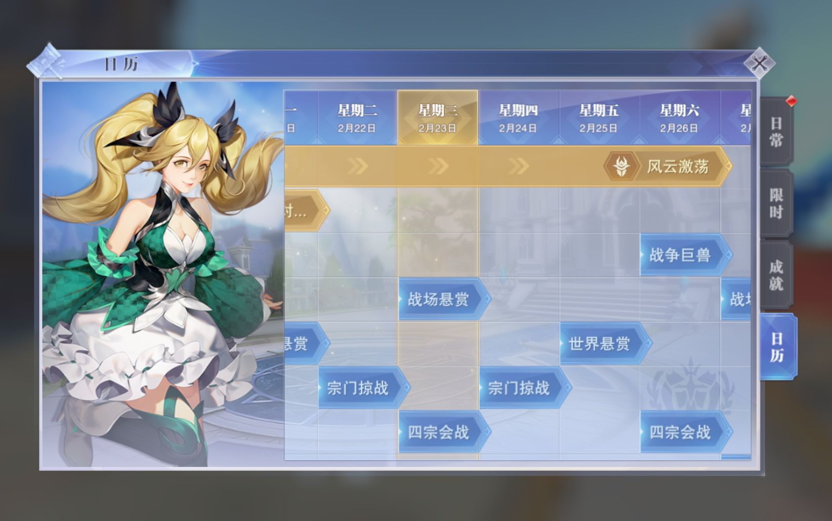 周二就可以开始攒次数以及体力,其中兽巢可以提前一天派遣不打,也就是说周一的兽巢只派遣不打 周三周五的悬赏不打 一直到周日下午四五点把攒的次数以及体力都用光,然后下周一再把剩下的世界悬赏刷了,具体流程就是这样