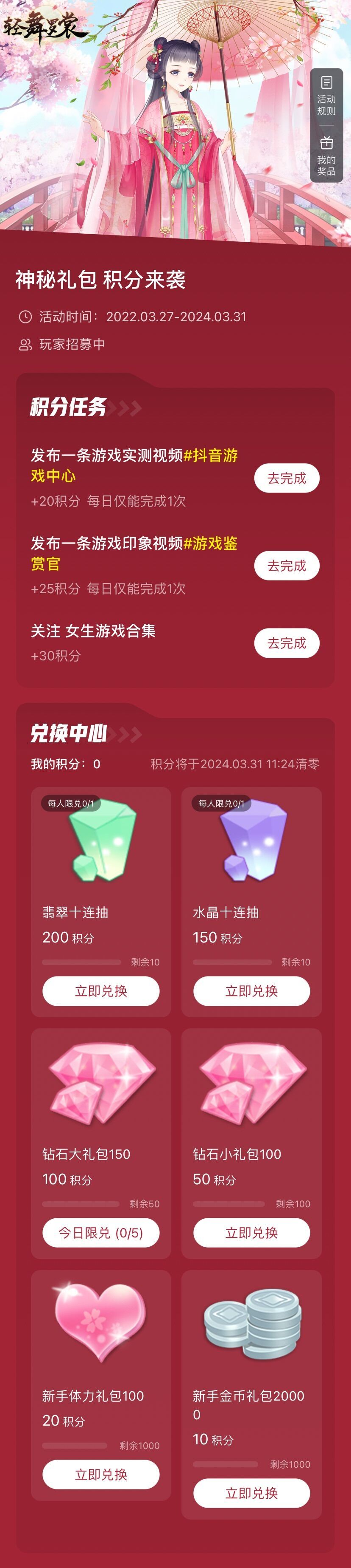 轻舞罗裳【神秘礼包,积分来袭】活动正式上线! !!