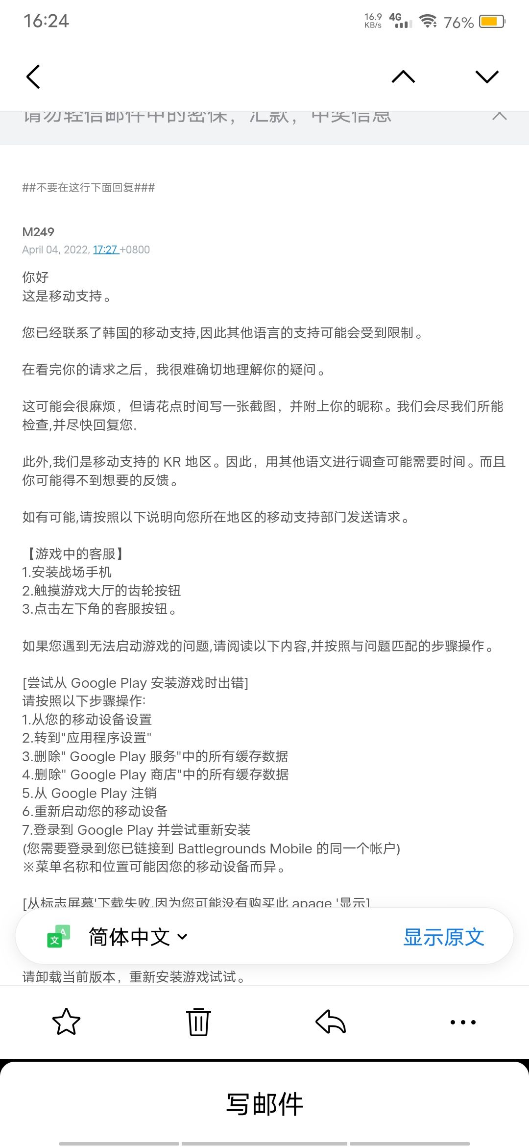 人工客服的答复