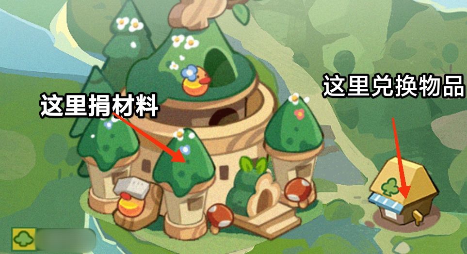 ⑤大森林:大森林是个互动的玩法,虽然内容不多大森林位置点进去中间这个位置可以捐材料,各种材料捐献获得橡果: