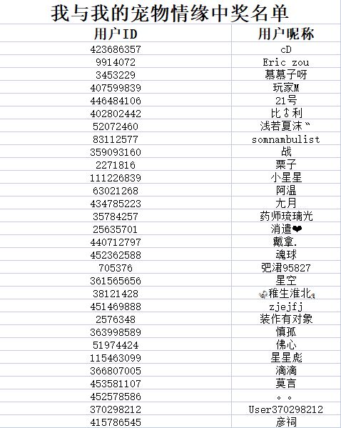 【抽奖池名单公示】我与我的宠物情缘