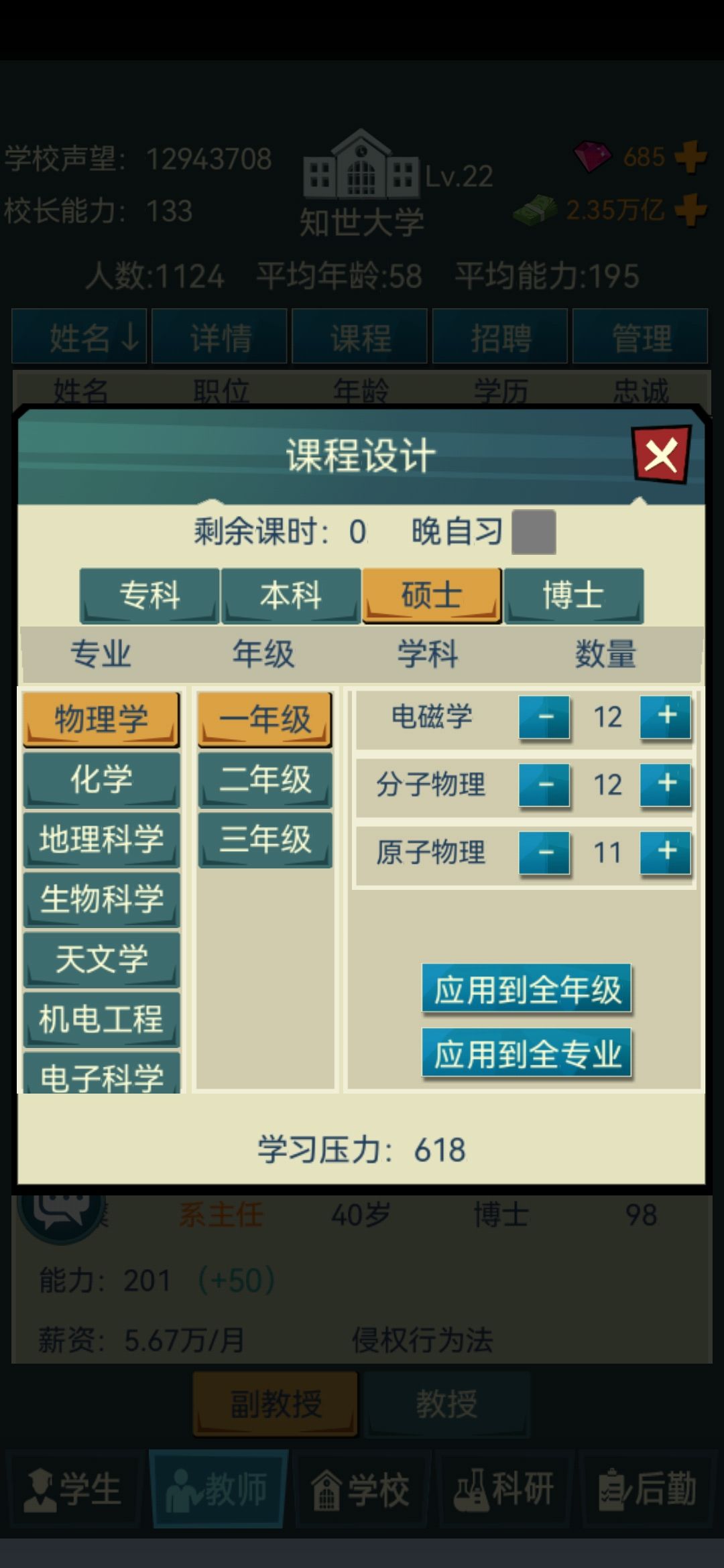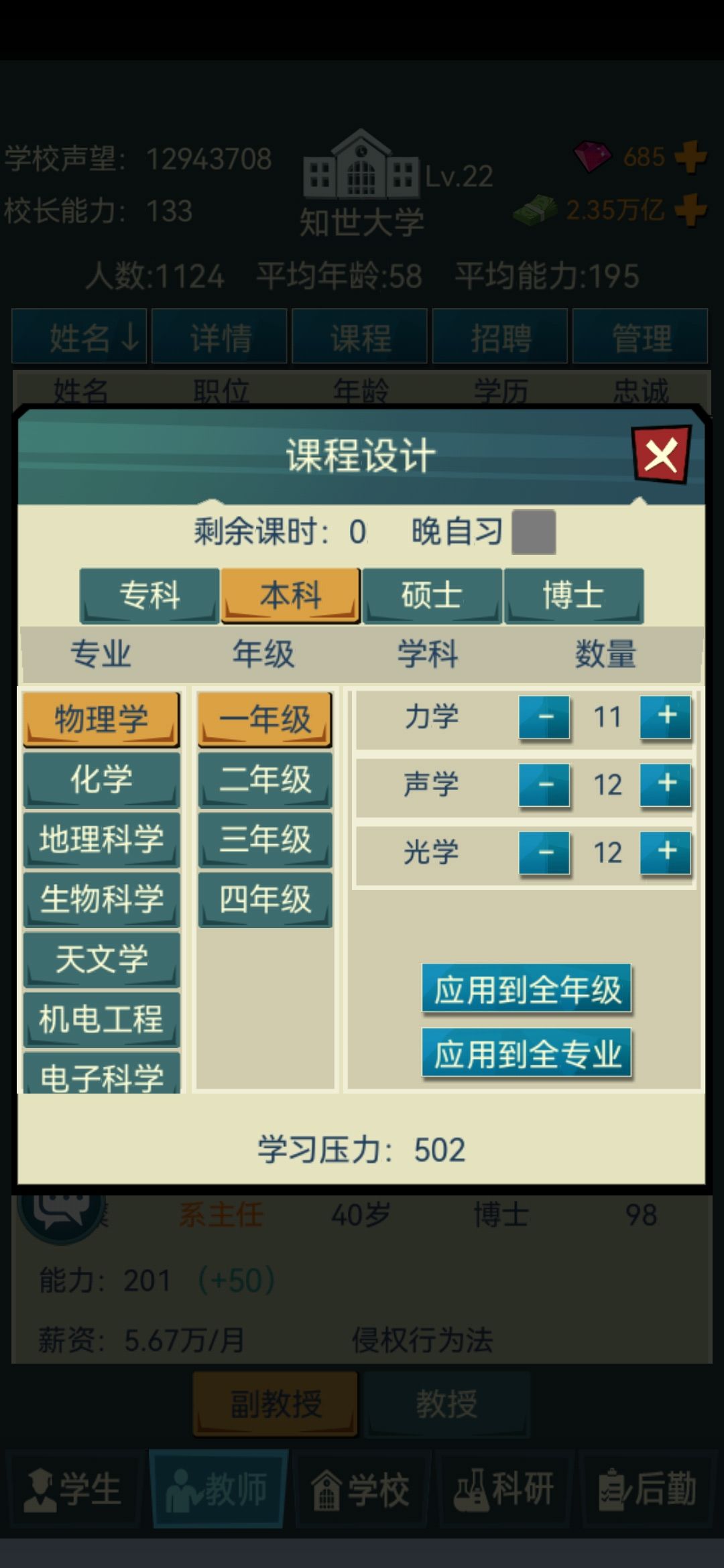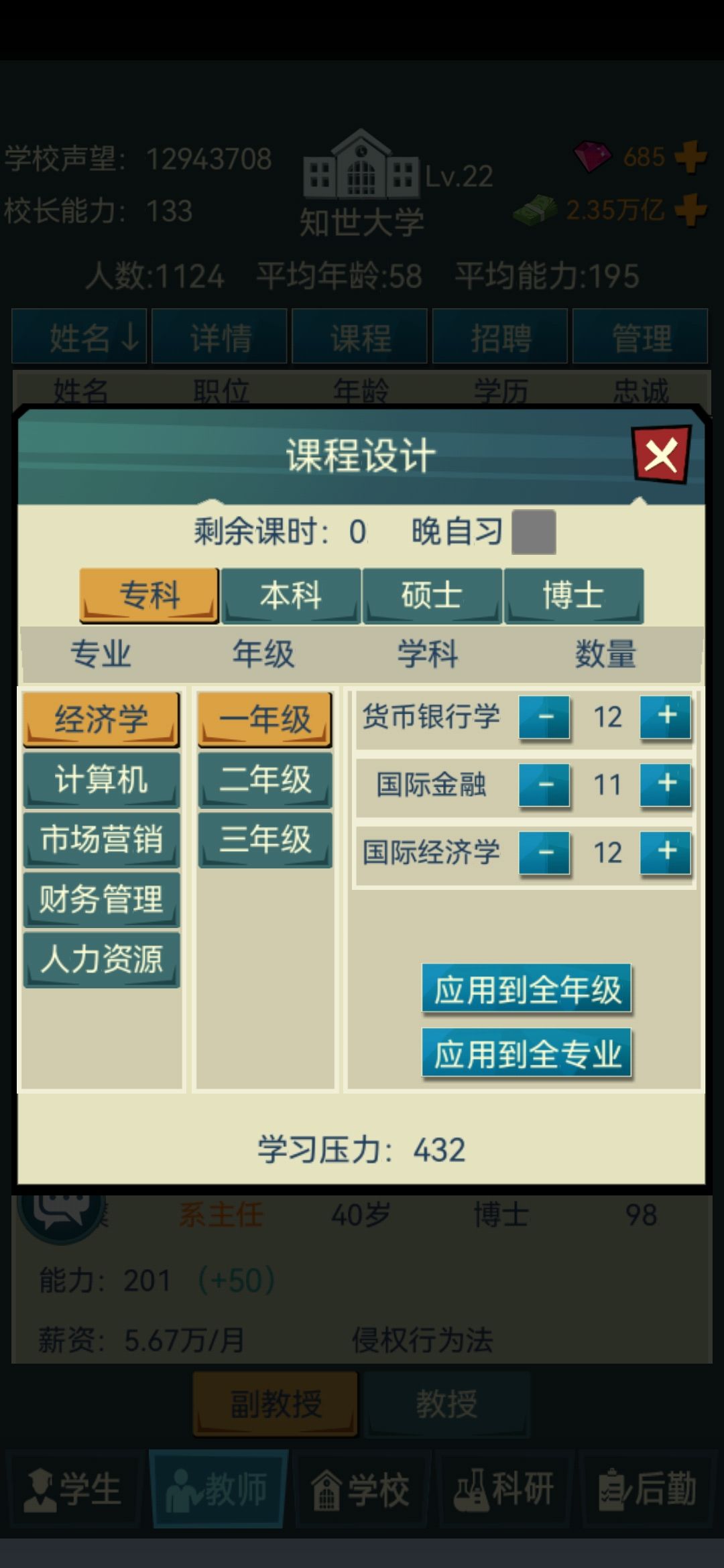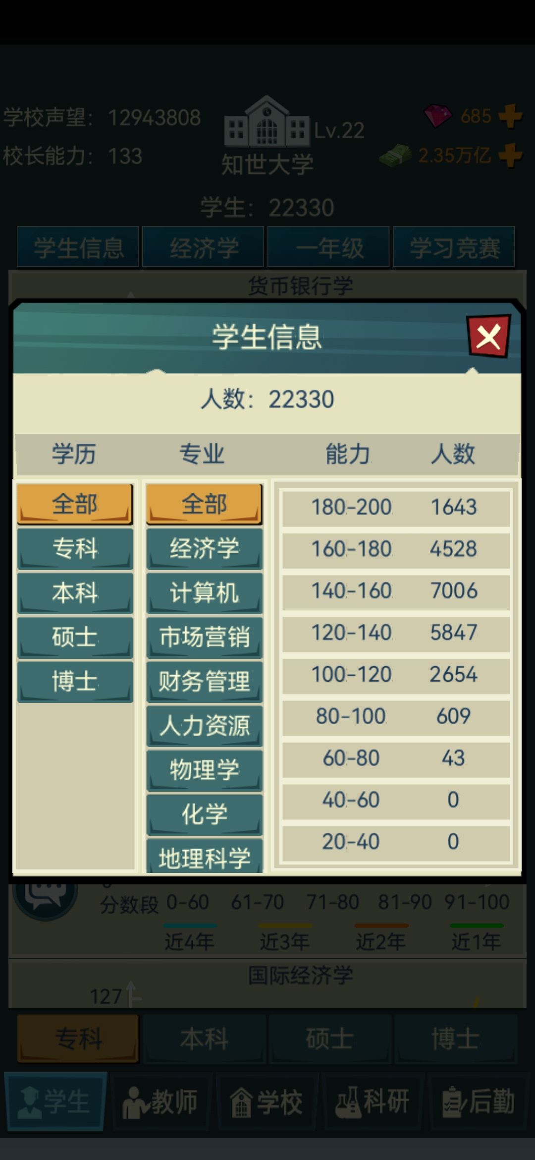 4.学生录取分数!!!拉满 拉满 拉满(重要的事情说三遍!)一定不要觉得你设置的分数线高了,因为一些学生真的会摆烂我全部拉到最高之后还是会有一些能力低的学生被录取(这里强烈建议官方出一个可以在录取是筛选学生能力的功能!!!这里@一下官方大大)