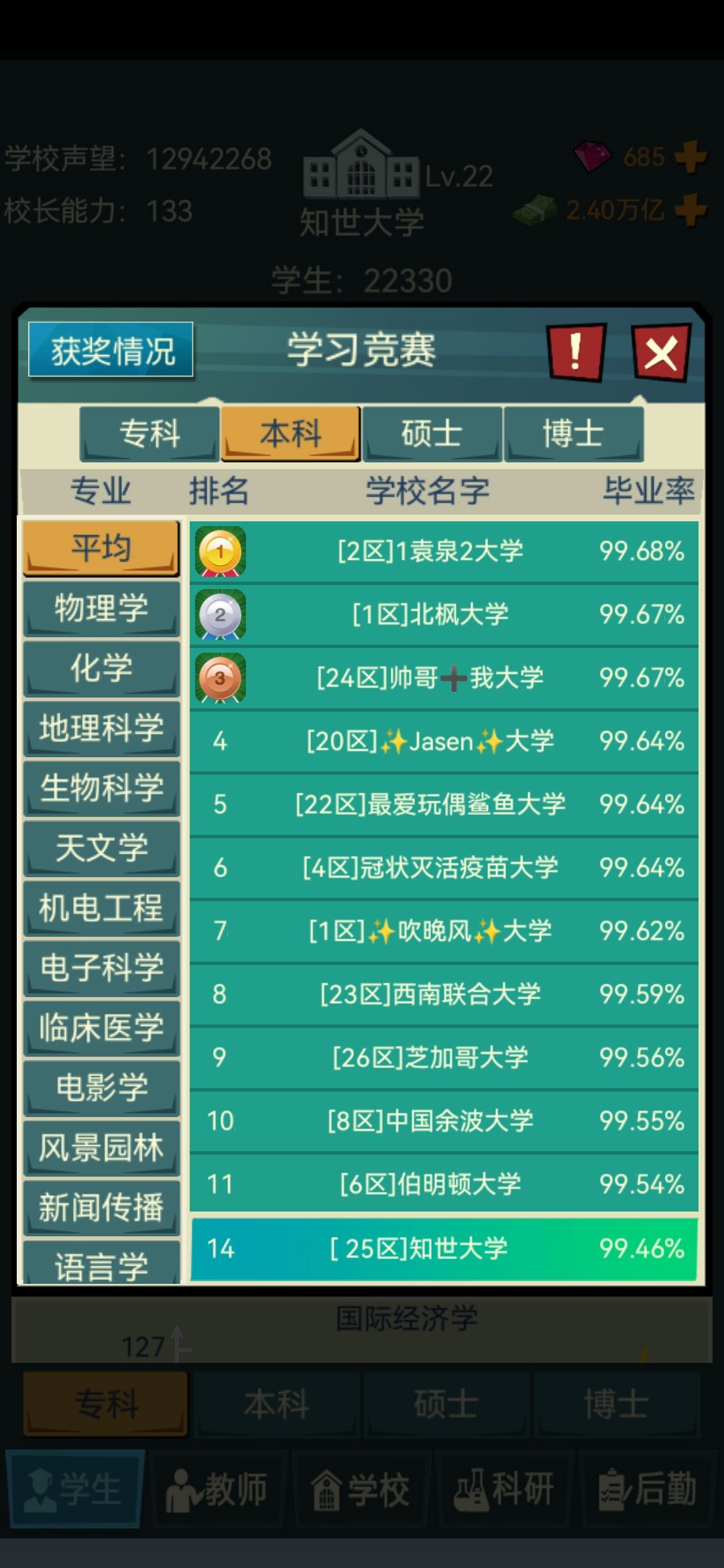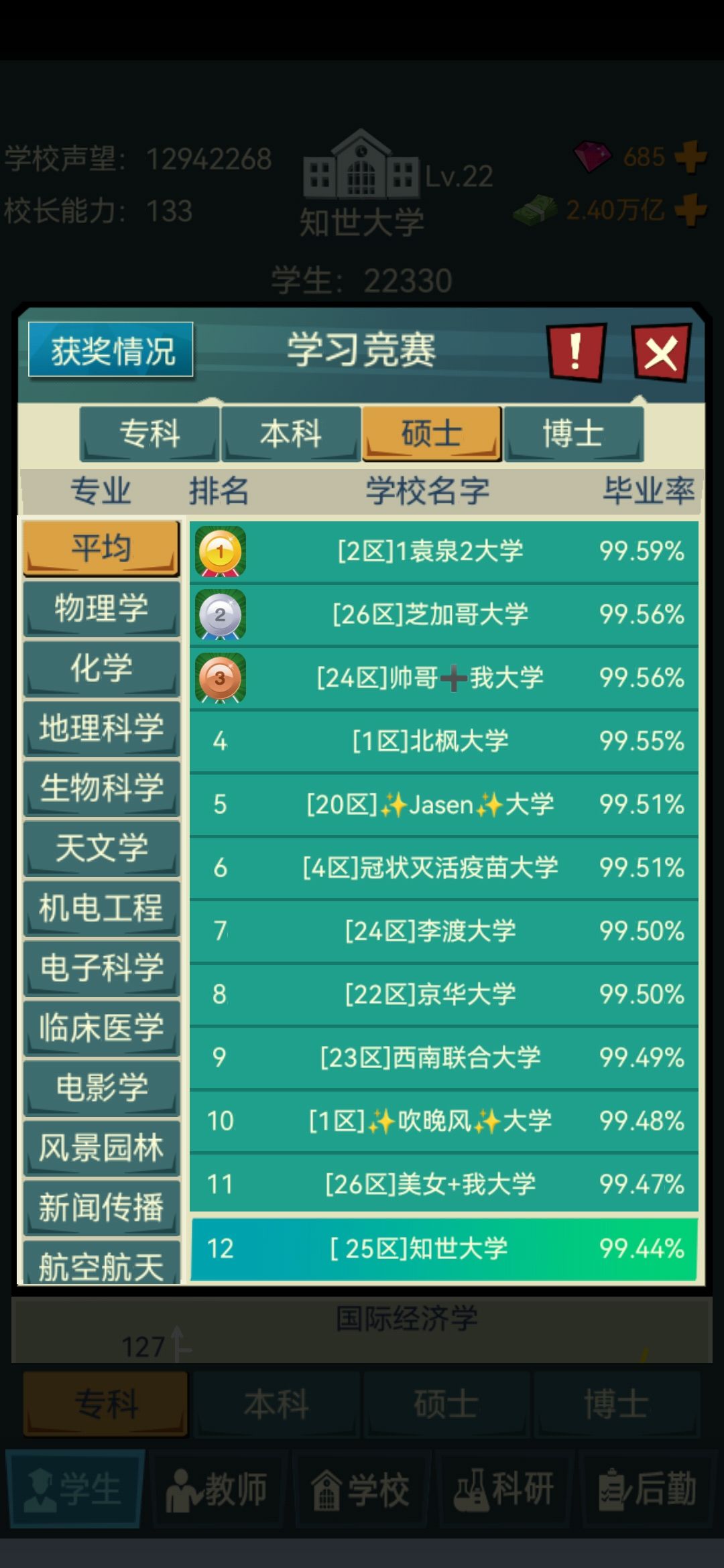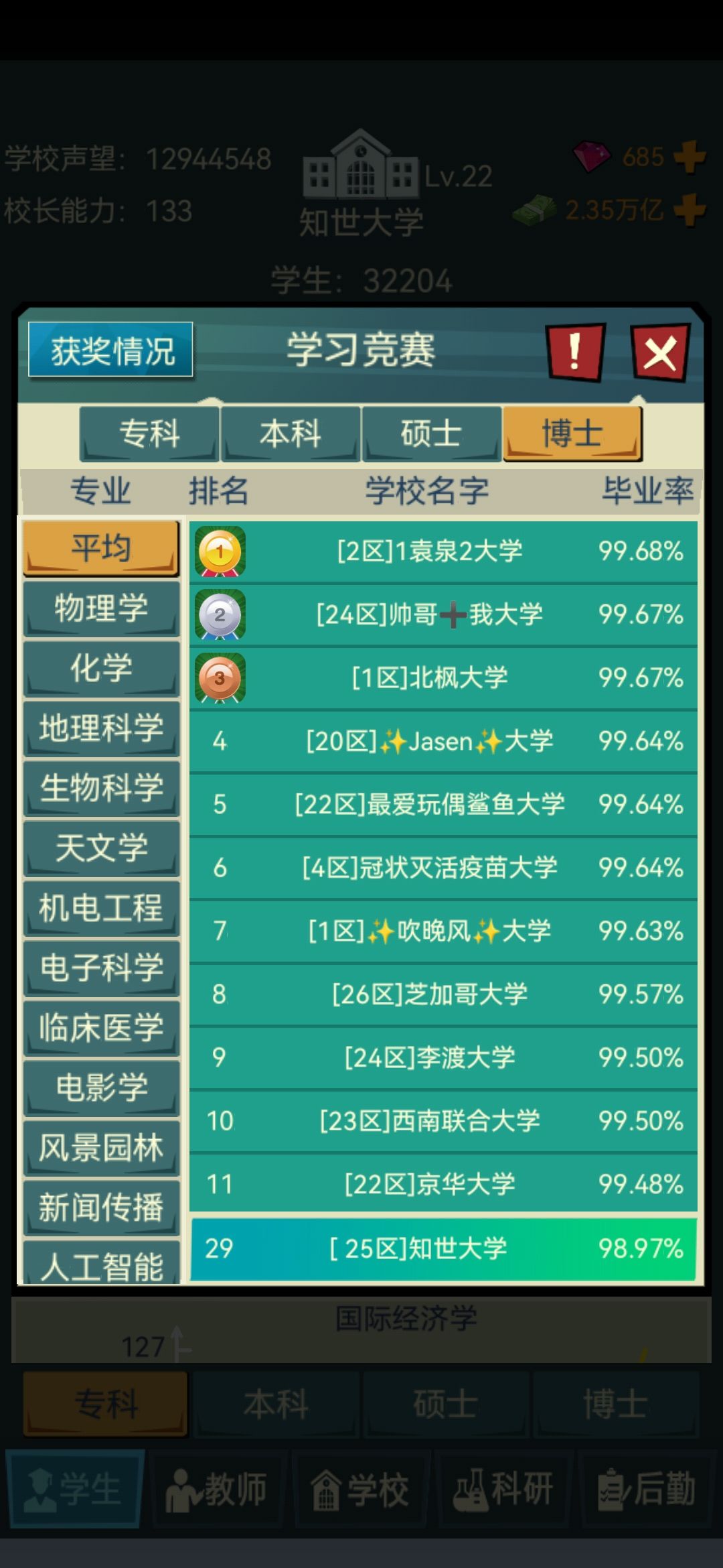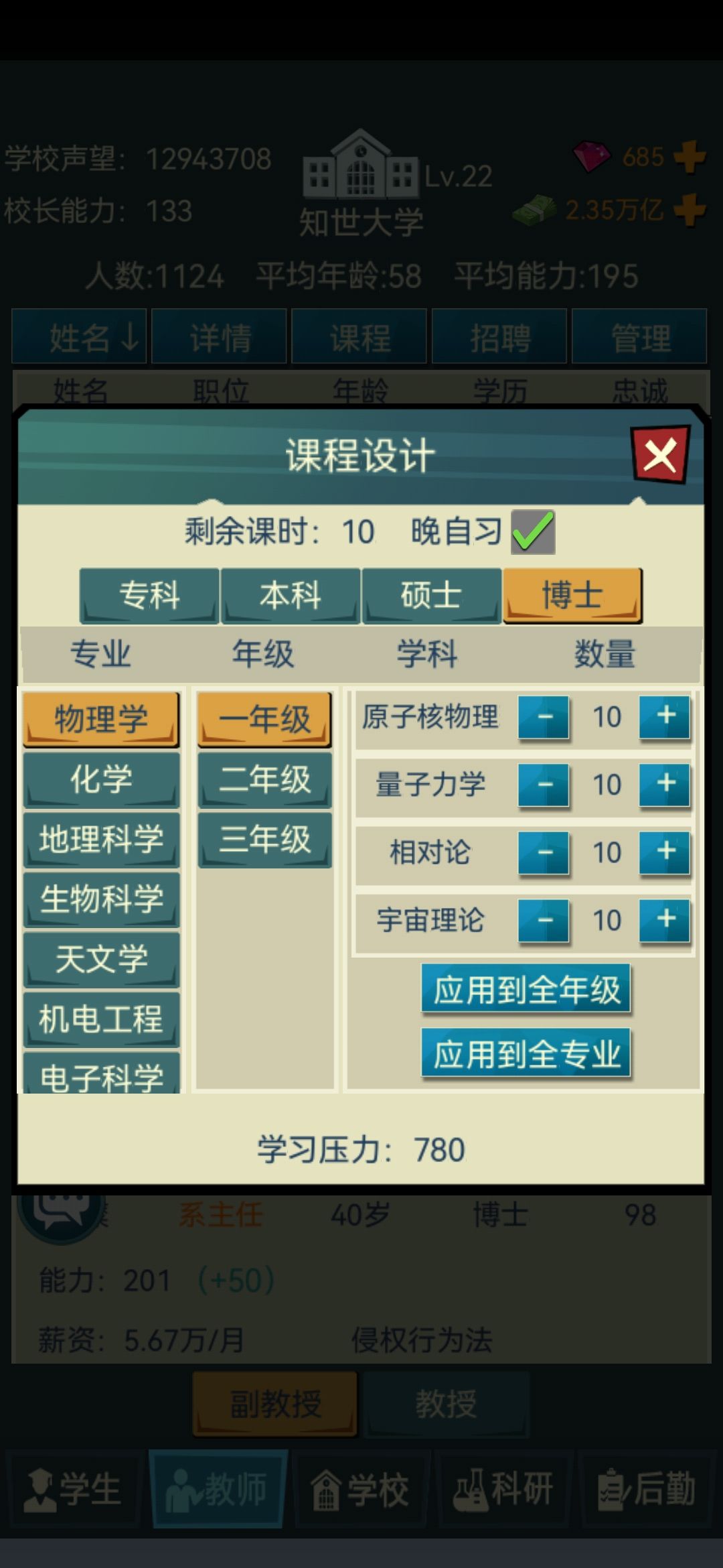 4.学生录取分数!!!拉满 拉满 拉满(重要的事情说三遍!)一定不要觉得你设置的分数线高了,因为一些学生真的会摆烂我全部拉到最高之后还是会有一些能力低的学生被录取(这里强烈建议官方出一个可以在录取是筛选学生能力的功能!!!这里@一下官方大大)