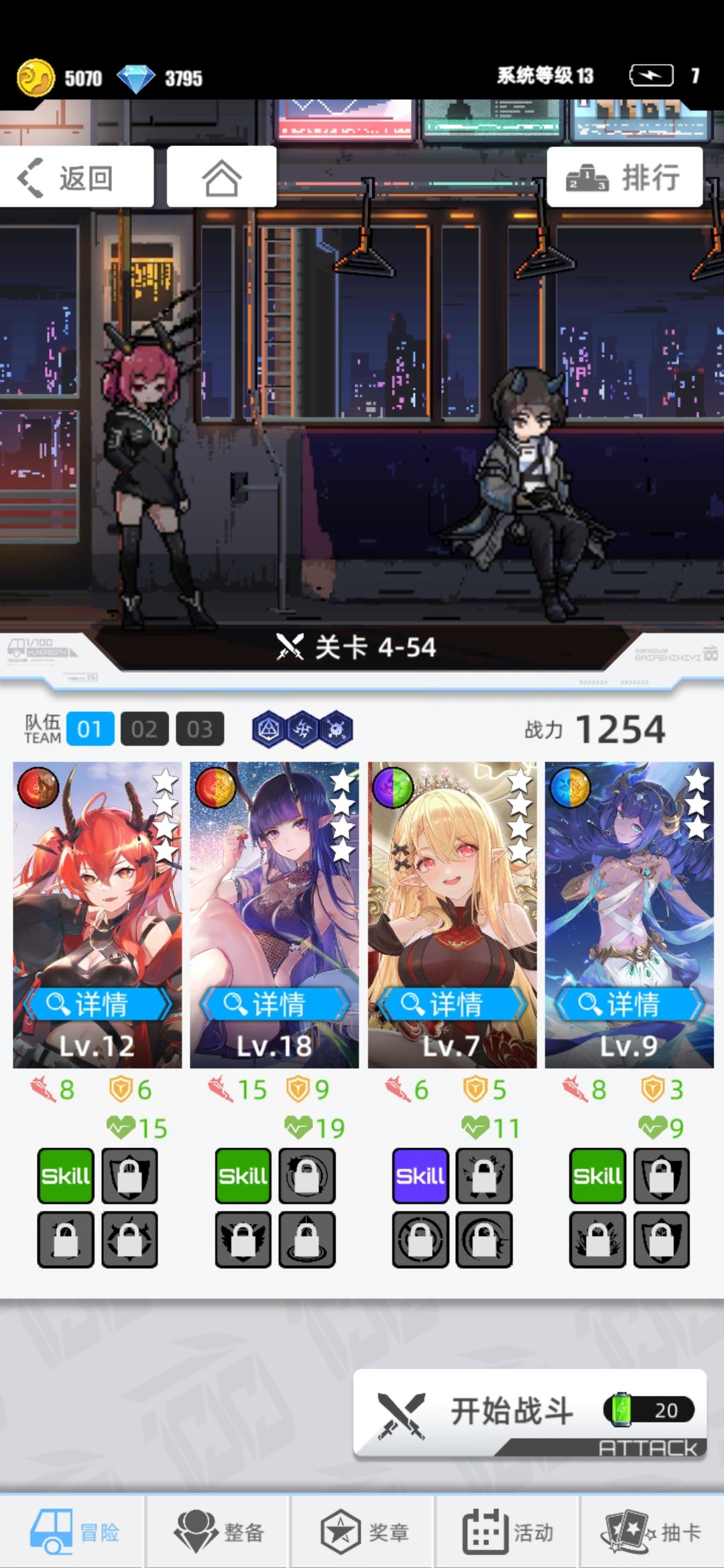 核心输出还是一号位的平a和二号位的技能,当然不升太高也没太大问题,反正周转性能比较强,主要思路是靠三四位的爆破宝石加增加回合凑一个光宝石多的局面,一号位翻倍光宝石二号位增加光宝石也可以产生宝石进行轮转,同时靠三号位提供的沉默一定程度解决内鬼情况