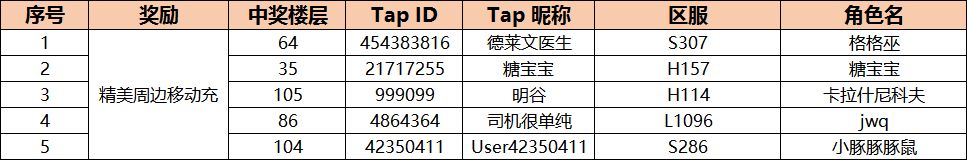 恭喜以下大大们在本期活动中中奖啦,包含精美周边移动充*1!