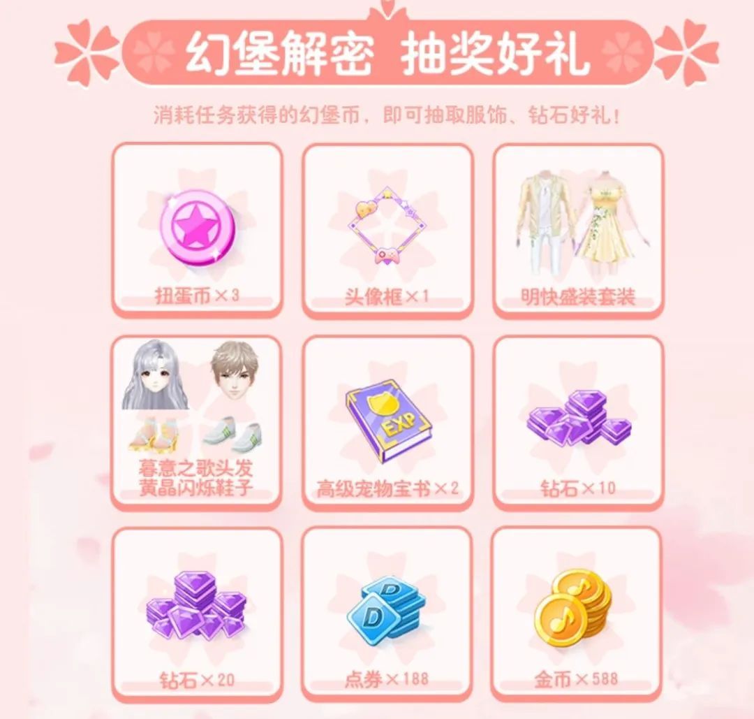 【幻堡解密·抽奖好礼】消耗任务获得的幻堡金,即可抽取服饰&钻石&点券等好礼!
