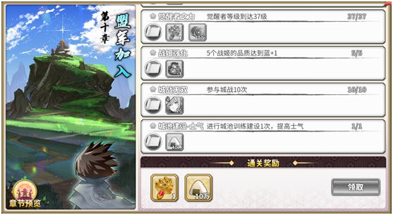 三.觉醒者之路:完成所有任务跟完成个别分支任务可以获取兵粮跟铜钱