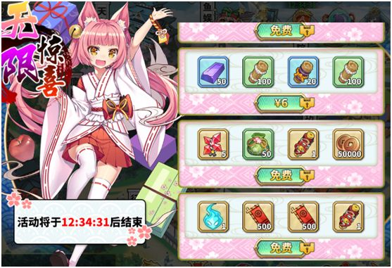 三.惊喜:每日可通过惊喜礼包小额充值获取铜钱跟一些资源