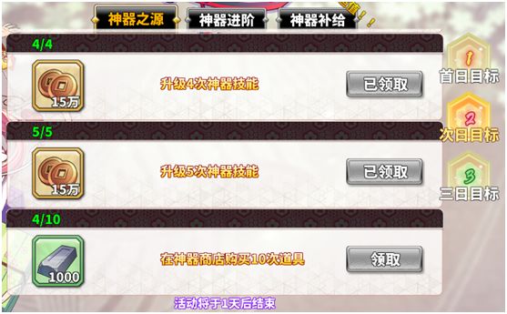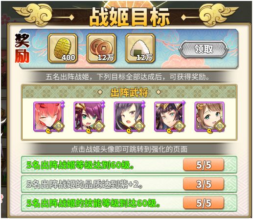 1.事件—战姬目标:完成指定的三任务就可获取主任务里的兵粮跟铜钱
