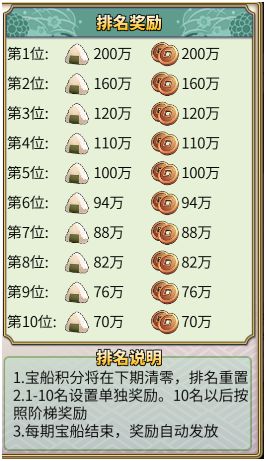 4.家族宝船:排名越高最后结算获取的兵粮跟铜钱也会越高