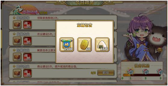 1.家族日常:个别宝箱完成后会获取兵粮跟铜钱