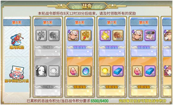 四.战令:购买战令后,在对应天数完成对应的总战令积分就可获取铜钱
