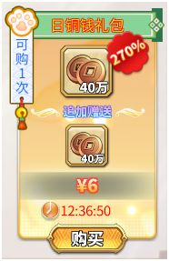 二.礼包—每日精选:每日可购买一次铜钱礼包