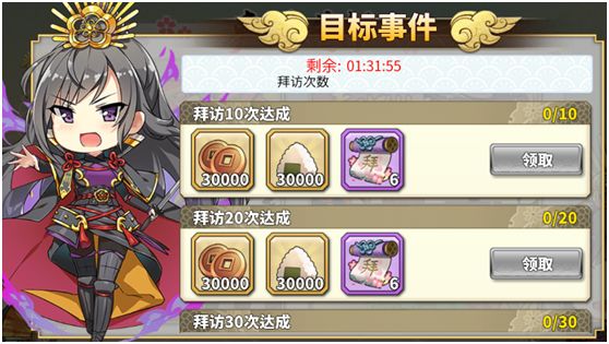 3.事件—战姬拜访:拜访任务做的越多,获取的兵粮跟铜钱就越多