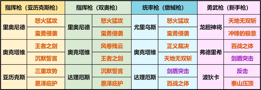 指挥枪由里奥尼德、奥克塔维和亚历克斯组成,以指挥技能为核心输出。