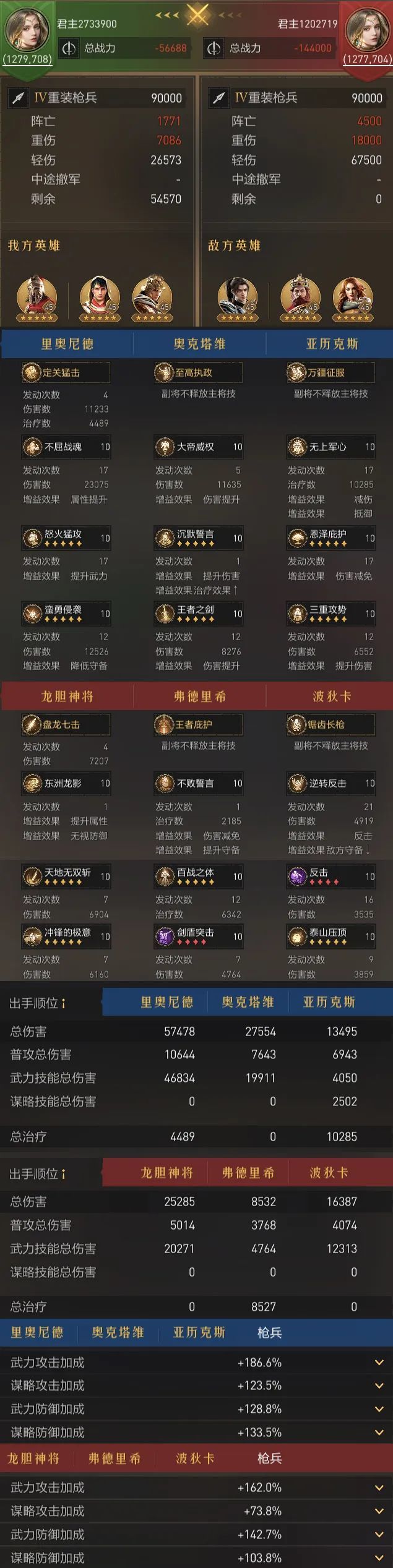 队伍配置:队伍为90000兵力,技能等级均为10级,英雄天赋满级,无科技加成。