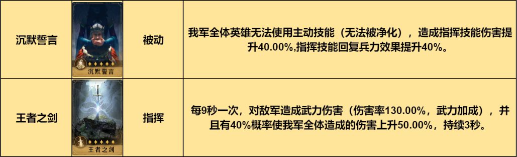 技能可选择指挥系的核心沉默誓言,另一个技能选择指挥系输出技能王者之剑。