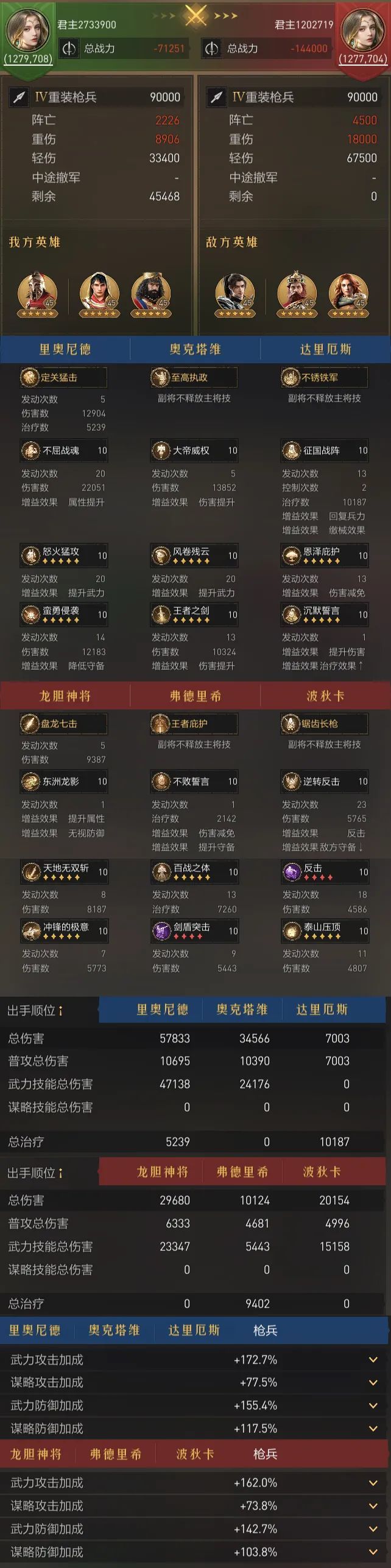 队伍配置:90000兵力,技能等级10级,英雄满天赋,无科技加成。