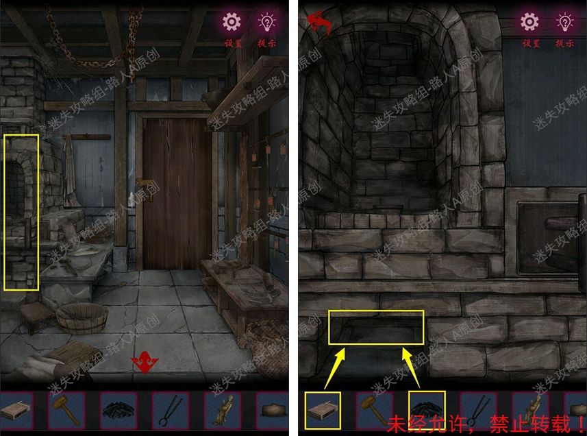 102.拾取【火柴】、【木炭】、【木槌】、【火钳】。102.1