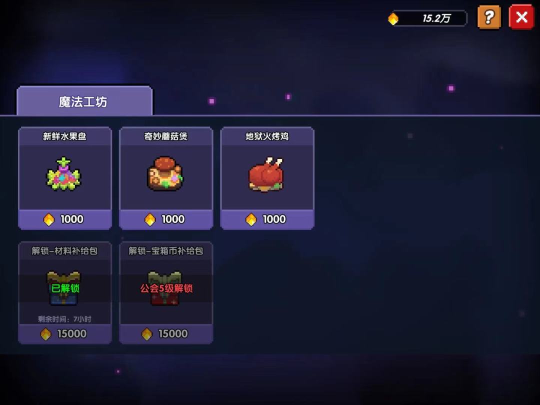 会长与副会长可以在魔法工坊用资金购买食物与补给包(建议购买地狱烤火鸡与材料补给包)