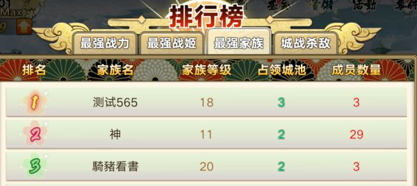 怎么判断一个家族强不强,点开排行榜的最强家族,看家族的人数和占领城池数,厉害的家族这两项数据都较高,不能光看排名。