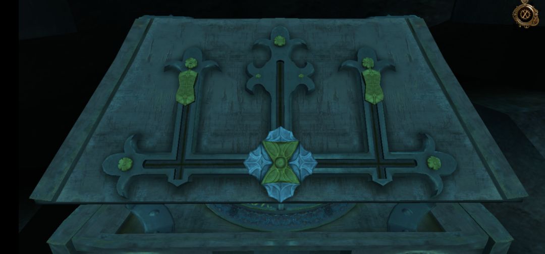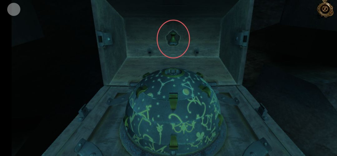 点击信件,信件后还有一个浮雕铜钮,将浮雕铜钮放在球形机关顶部凹槽中,再拖拽拼接好图案,得到金属球(这里球形机关打开太快,很难截到拼好的图案)