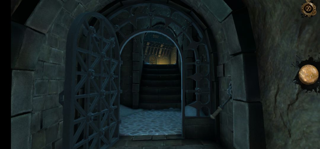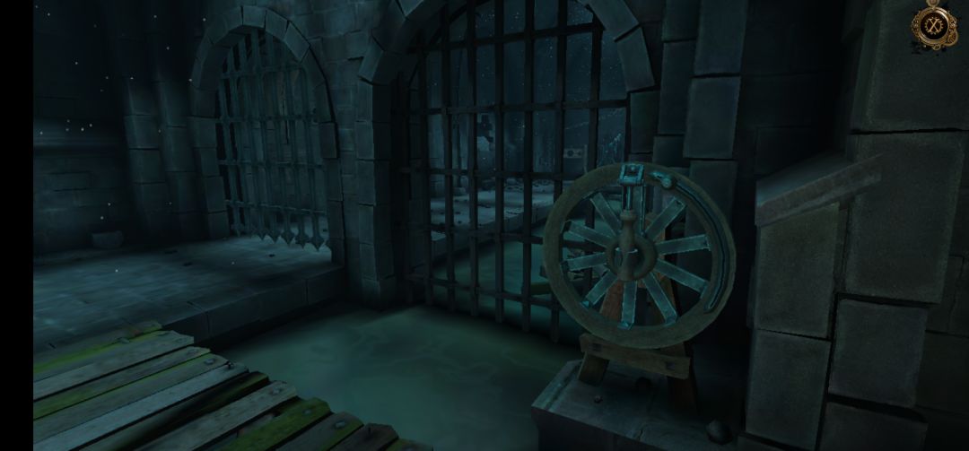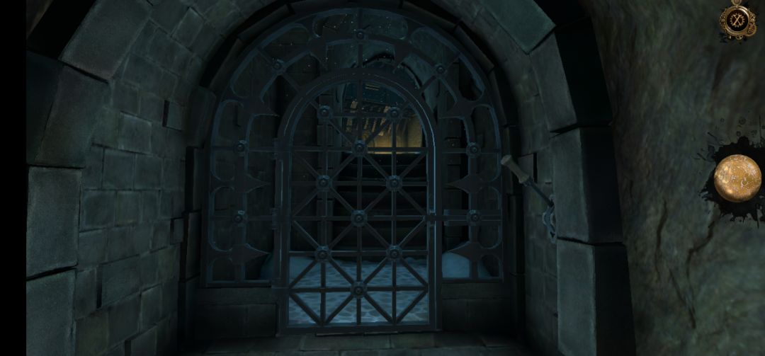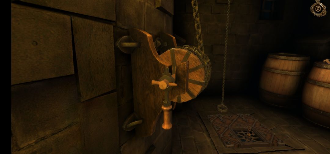 进入地下室后,来到这里,先将画圈处小金属旋钮向下拖拽,然后再拉动摇把,铁门打开
