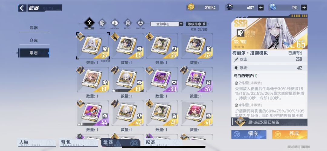 玩了四个月。装备不行意志不知道给谁配。第一次抽了四星梅丽尔。哎。