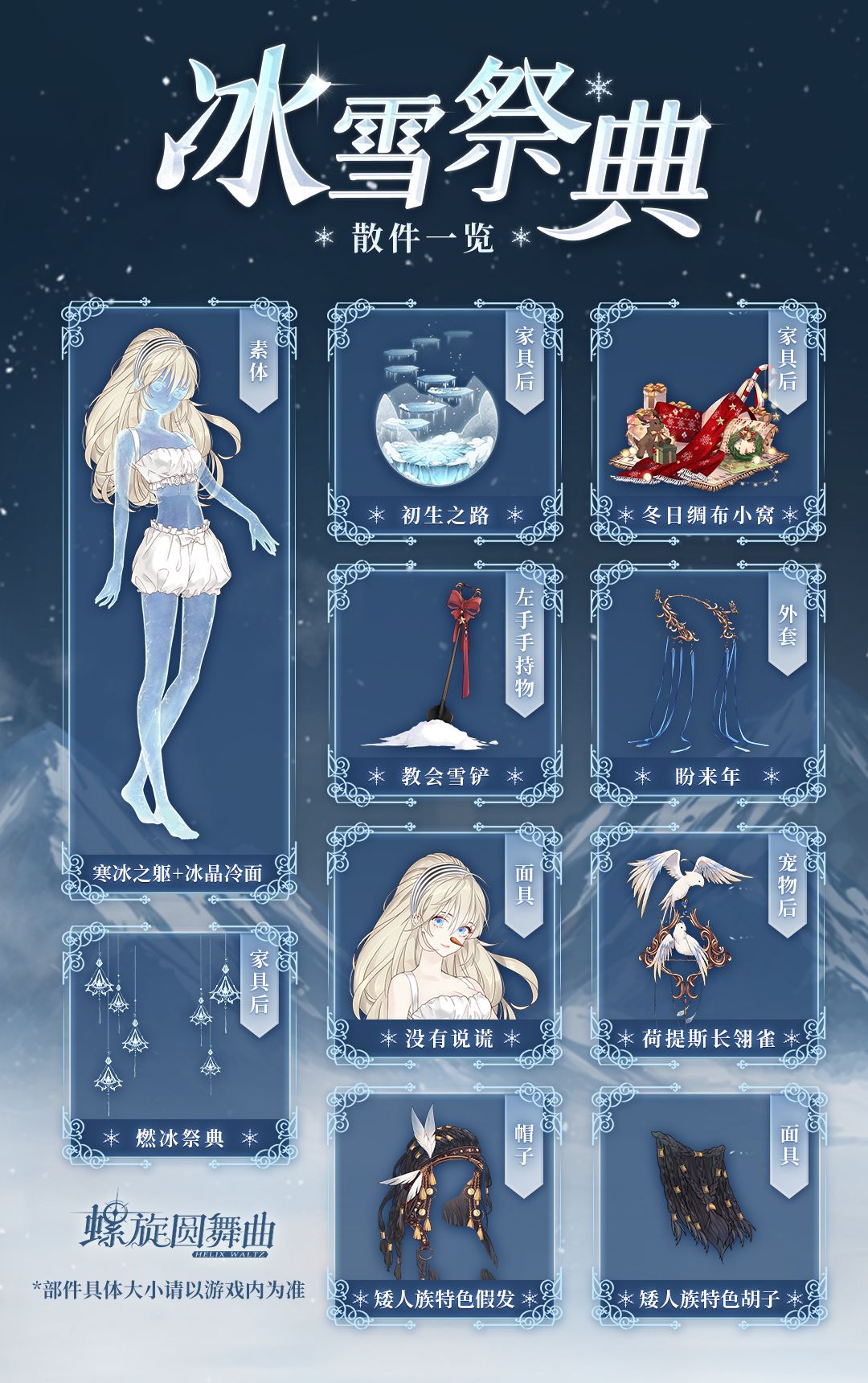 累计充值满128元,赠送「冰雪启明星」部件「衬冰丝」「崖边错雪」「隐冠于雪」。