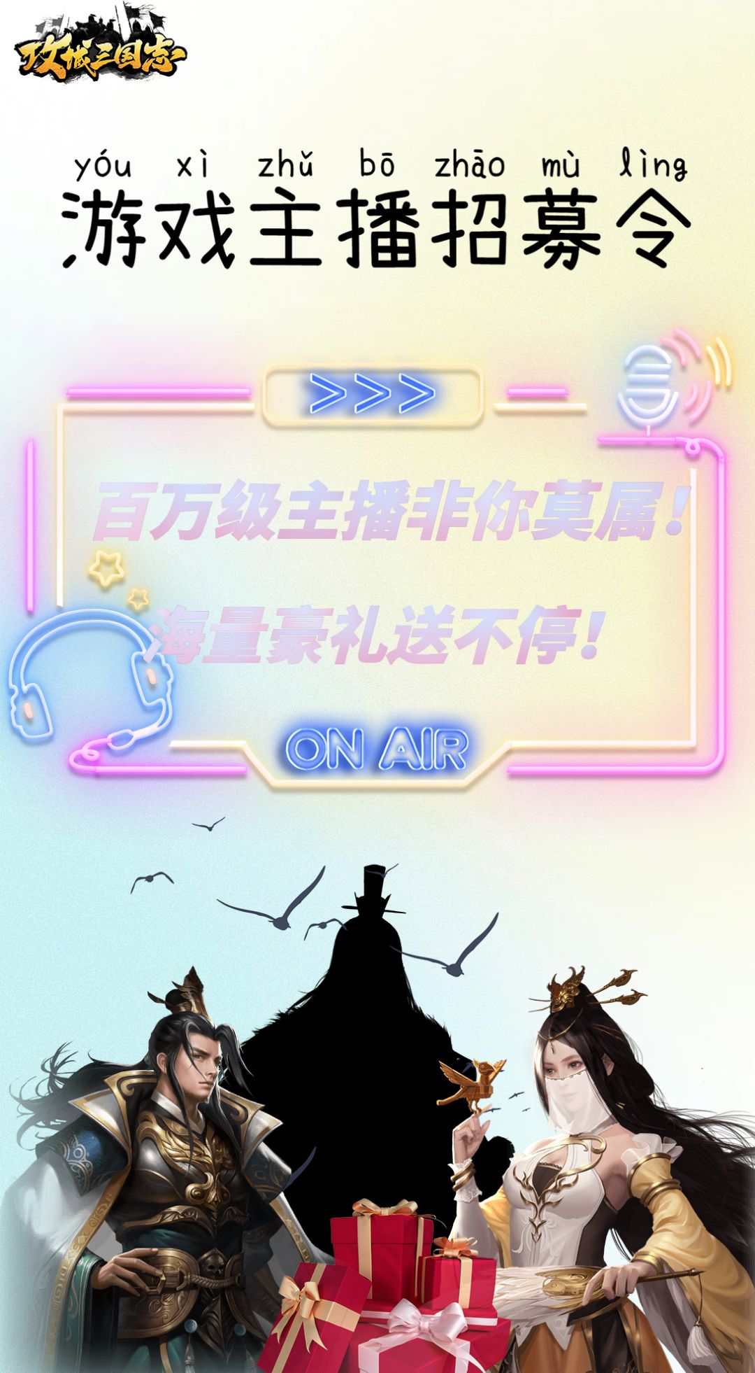 【攻城三国志】游戏主播招募令#海量豪礼送不停!!
