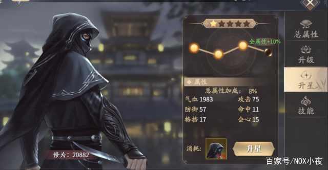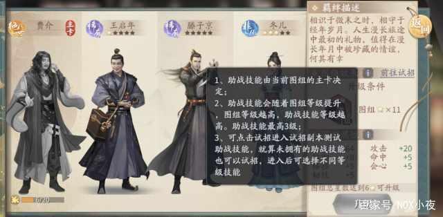 每个图组都有主卡,当提升当前图组整体星级后,可升级主卡的助战技能效果。如下:我的主卡是影子,当影子+谢必安+藤子京+林珙的总星级达到11星,即可使影子的助战技能得到提升效果如下图。