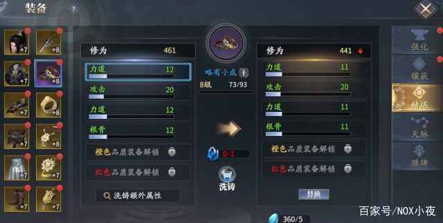 精炼继承:精炼属性不跟随装备,即切换装备精炼等级和属性不变。除非装备从红装变橙装或者更低级,导致词缀减少。