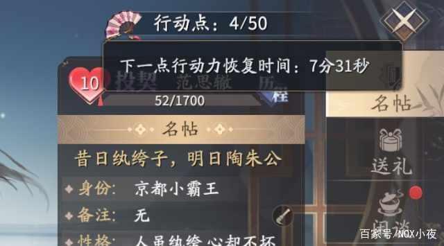建议优先提升有别传的伙伴好感度。每日行动点,每过一段时间会恢复行动点。