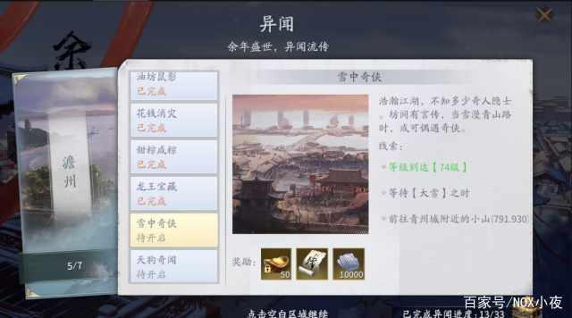 每个异闻可获取1万经验,别人比你等级高,可能差距就在这里。异闻触发条件各不同,有些需要主线剧情或等级、有些需特殊条件触发,如大雪天等。