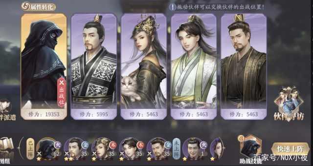 一共可上阵5位伙伴,战斗中若第1位死去,则第2位顶上。因此建议主升第1位等级,后面4位平均提升等级。可通过快速上阵,一键将战力最高的几位进行上阵调整。