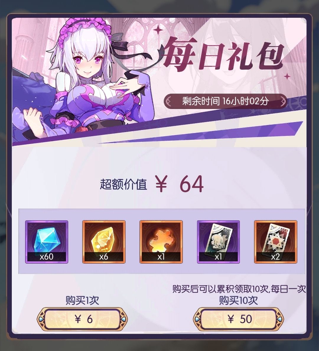 ●每日礼包的东西换算下来就是125元=一张恒金自选+25张组队+1500钻石+150恒金,只建议千氪玩家购买1-2个月,后面看自己的预算,后续攻略将不会提起