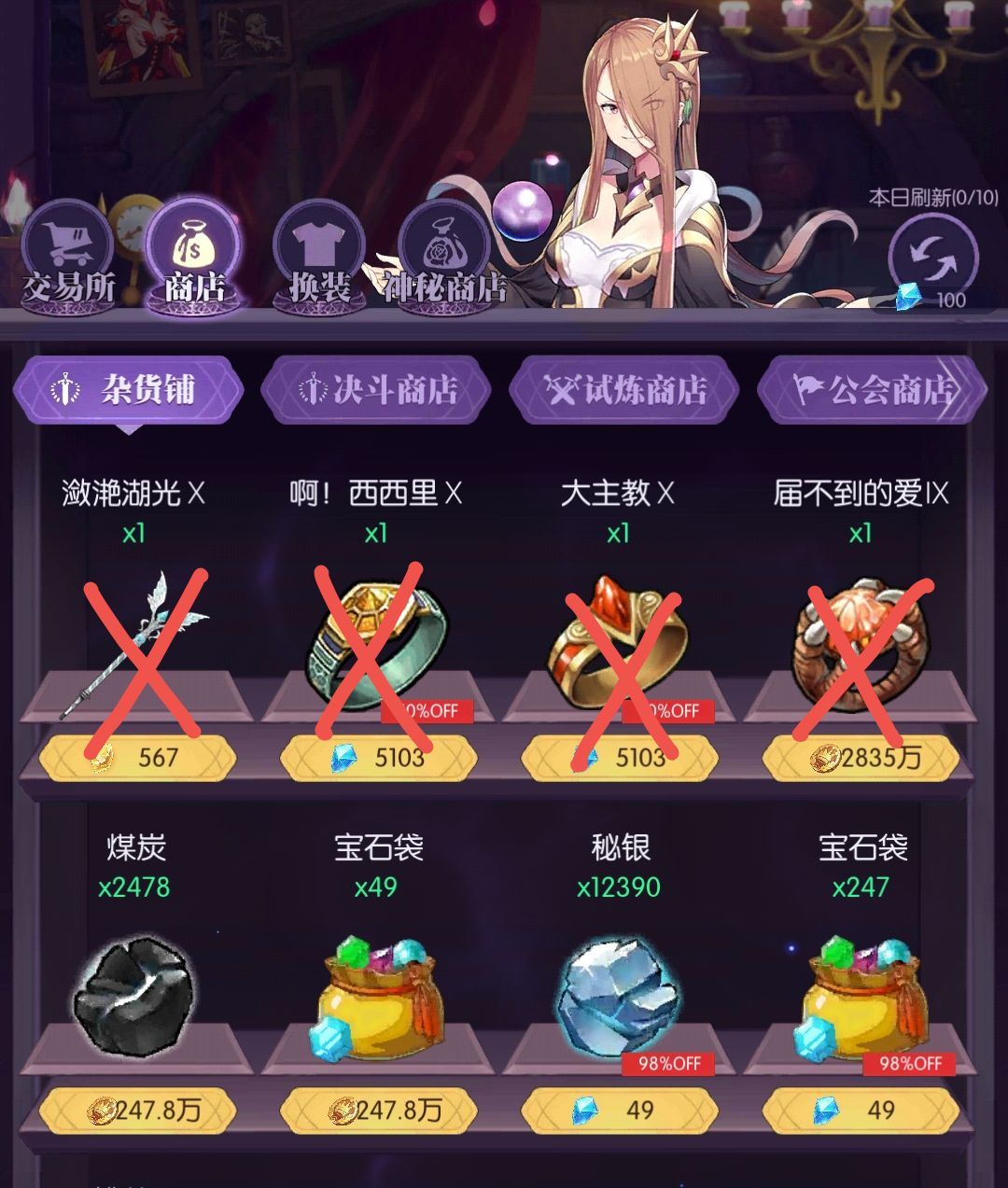 ●商店:卷轴商店一定要清空,在卷轴等级300级前,每周的商店都需要清空