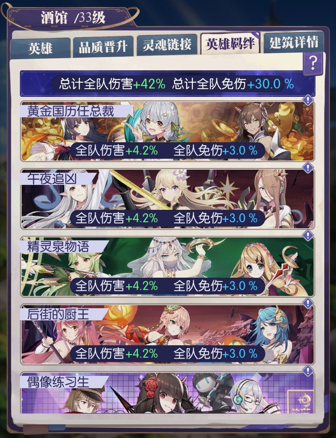 ●提升羁绊是项漫长的任务,这项任务需要到r4中期才能完成,不必着急,不要用钻石去抽取狗粮,一队羁绊最高为银色(4张本体卡),满羁绊伤害+42%
