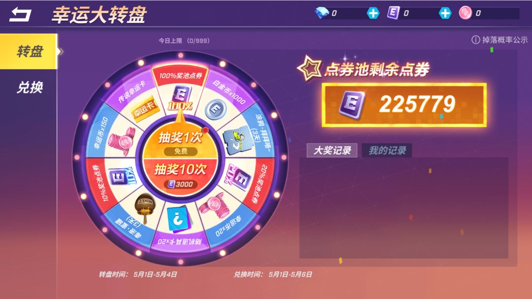 5月1日至5月4日,少年们可以通过转盘获取海量奖品和幸运币~
