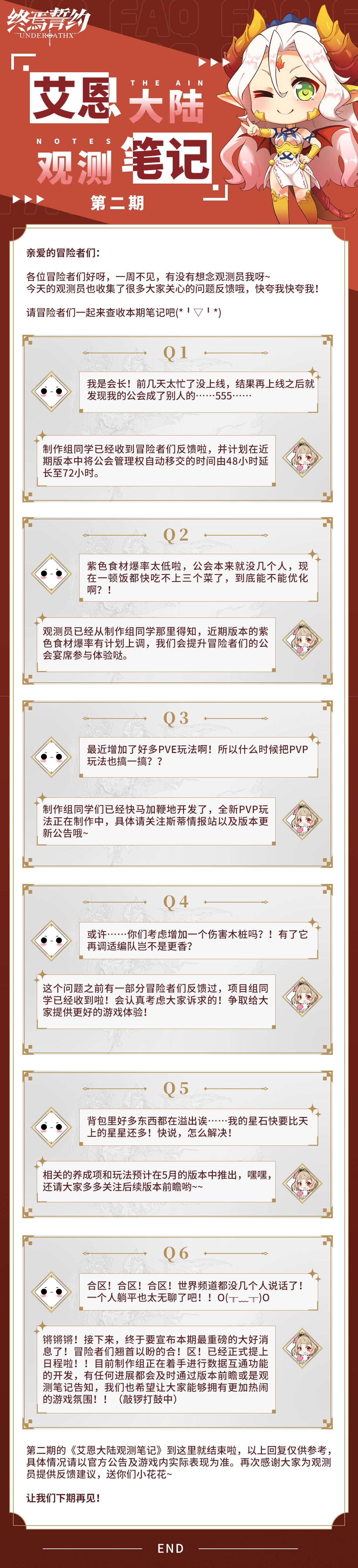 #终焉誓约# 冒险者们好呀~新任观察员又收集了很多问题反馈,很勤快嘛!