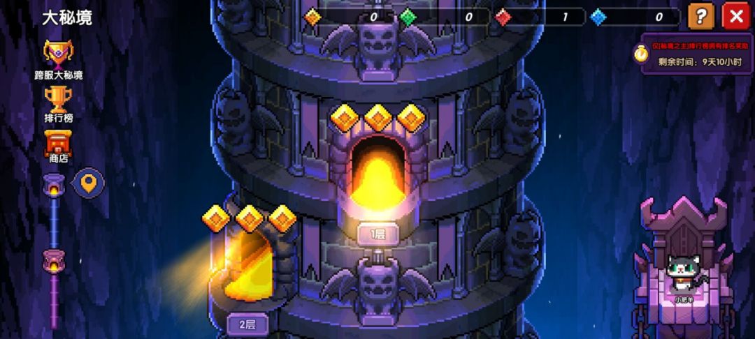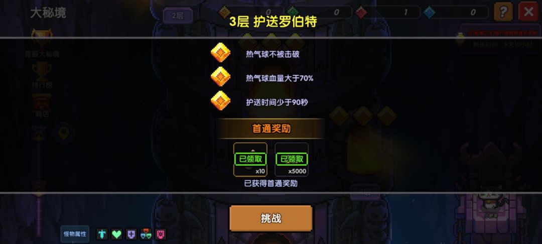 大秘境一共有70层,每层的玩法都不一样,有小怪,boss,护送气球,守护水晶关卡