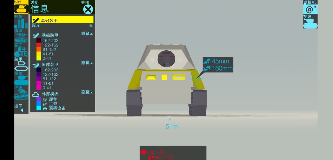 与其他坦克不同,T-25炮塔前置,而且炮塔空间巨大(升级潜力自然也大),俯仰角也特别优秀。