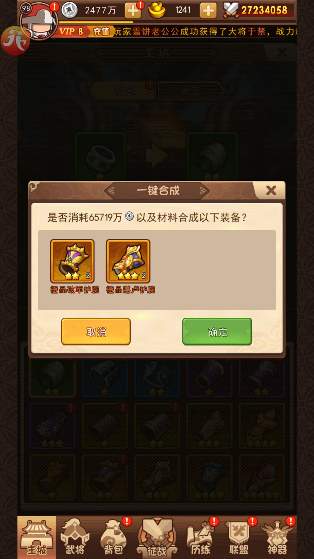 装备合成接近30亿有些过分了 武将置换功能 置换不到那几个武将这个功能的意义在哪呢